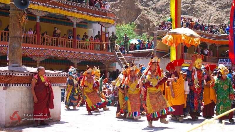 این جشن در پنجمین ماه سال که به آن ماه قمری تبتی نیز میگویند، به مدت دو روز جشن گرفته میشود و در حیاط بزرگ این صومعه برگزار میشود. مردان لباسهای سنتی میپوشند و زنان نیز جواهرات سنگین و روسری میپوشند.